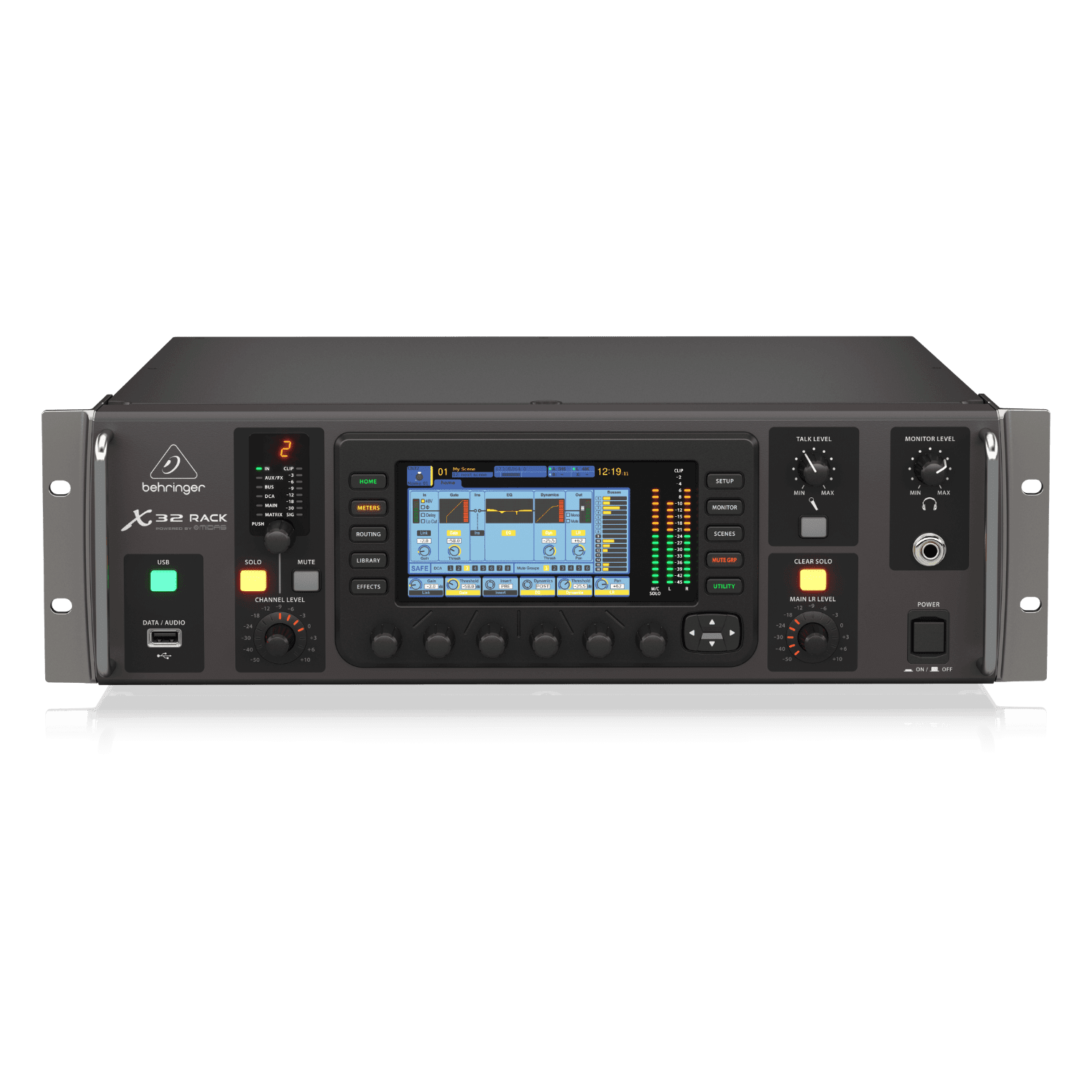 Behringer X32 Rack är en kompakt och kraftfull digitalmixer med 40 in- och 25 utgångar, baserad på den populära X32-plattformen. Den har 16 Midas-designade mikrofonförförstärkare och stöd för upp till 32 kanaler via AES50, vilket gör den flexibel för både live- och studiobruk. Mixern kan fjärrstyras via dator, surfplatta eller smartphone, vilket ger smidig och trådlös kontroll. Den inkluderar inbyggda effekter, scenautomation och ett USB-ljudgränssnitt för inspelning. Dess styrka ligger i den kompakta designen, kraftfulla funktioner och möjligheten att styra allt digitalt på distans.