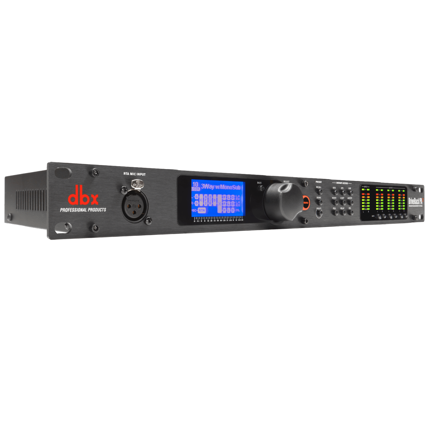 DBX DriveRack PA2 är en digital högtalarprocessor som optimerar ljudsystem genom att automatiskt justera EQ, delningsfilter och kompression. Den används för att förbättra ljudkvaliteten i live- och installationsmiljöer genom avancerad signalbehandling. Med funktioner som AutoEQ och AFS (Automatic Feedback Suppression) anpassar den ljudet efter rummet och eliminerar rundgång. DriveRack PA2 kan styras via mobil eller dator för enkel justering och finjustering av ljudinställningar. Den är ett kraftfullt verktyg för ljudtekniker som vill få ut maximal potential av sitt PA-system.